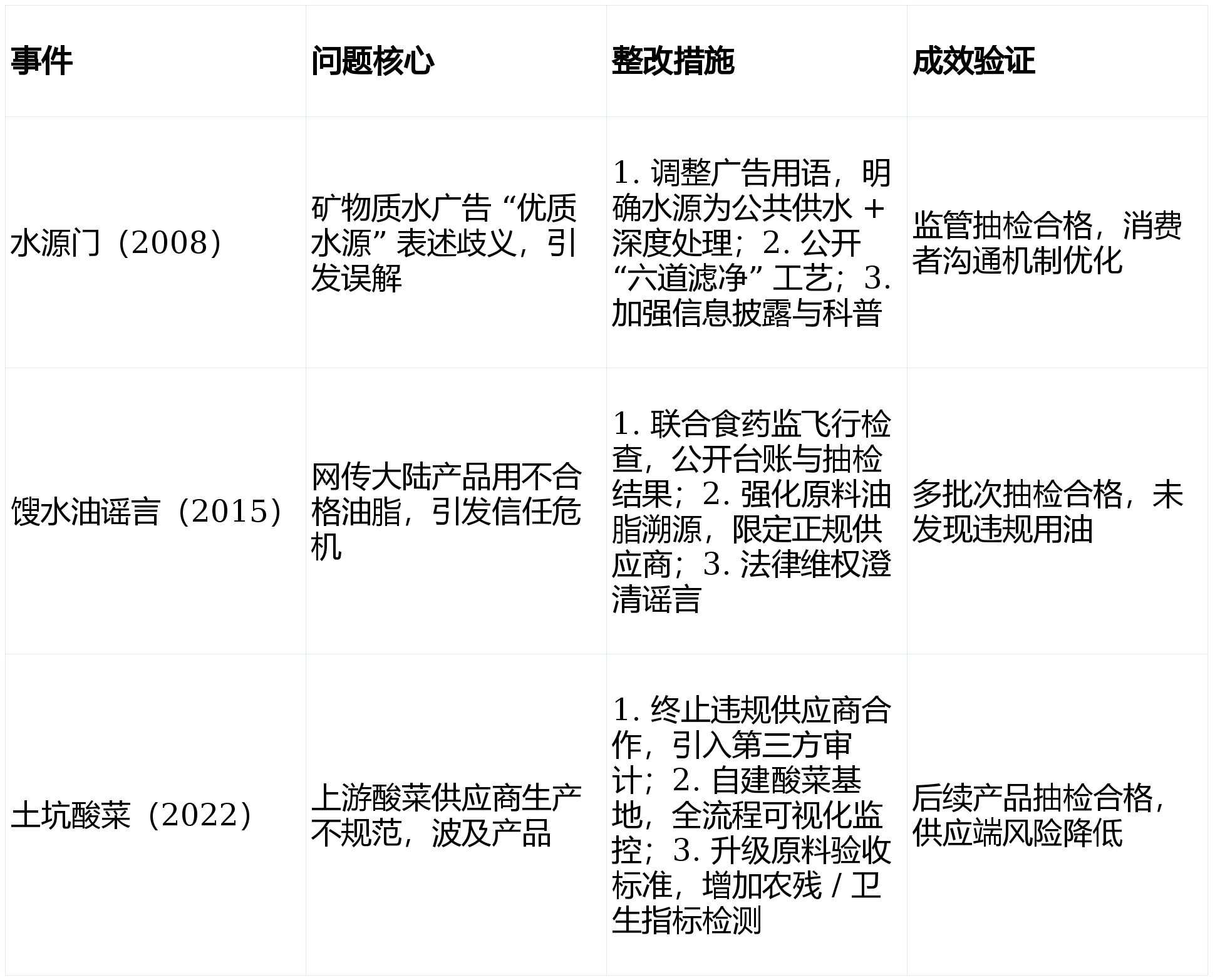 成效经监管取市场验证;按期外部审核。康师傅过) “三道防地 + 全流程 HACCP + 数字化逃溯” 建立闭环管控,通明化沟通:公开工艺、检测数据,整改以升级管控、强化溯源、通明化沟通为从,环节环节包罗供应商分级、过程 CCP 、数字化逃溯取尝试室检测;笼盖泉源、出产、成品、逃溯全链条,支撑精准召回。
